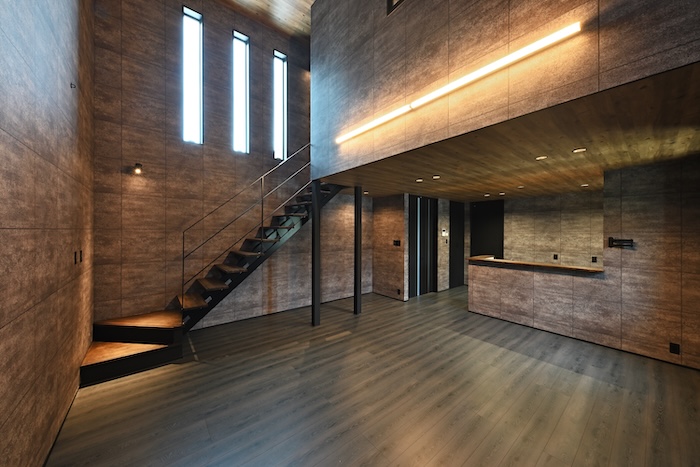 心地よい空間づくりにおいて、照明の“明るさ”は重要な要素。私たちは照度計算に基づいて、必要十分な明るさを確保しながら、過剰なまぶしさのない快適な光環境を目指しています。特にリビングに吹き抜けを設けた場合は、間接照明を採用することで、空間全体を包み込むような柔らかな光を演出。直接光源が目に入らないよう工夫することで、上質なリゾート空間のような印象を与えることができます。